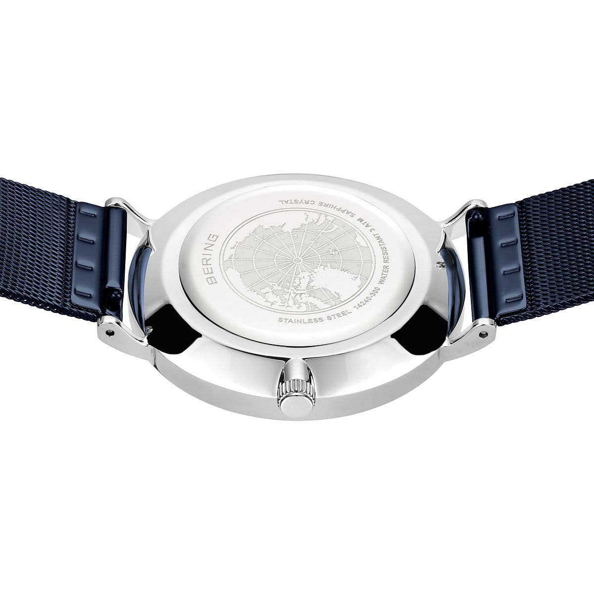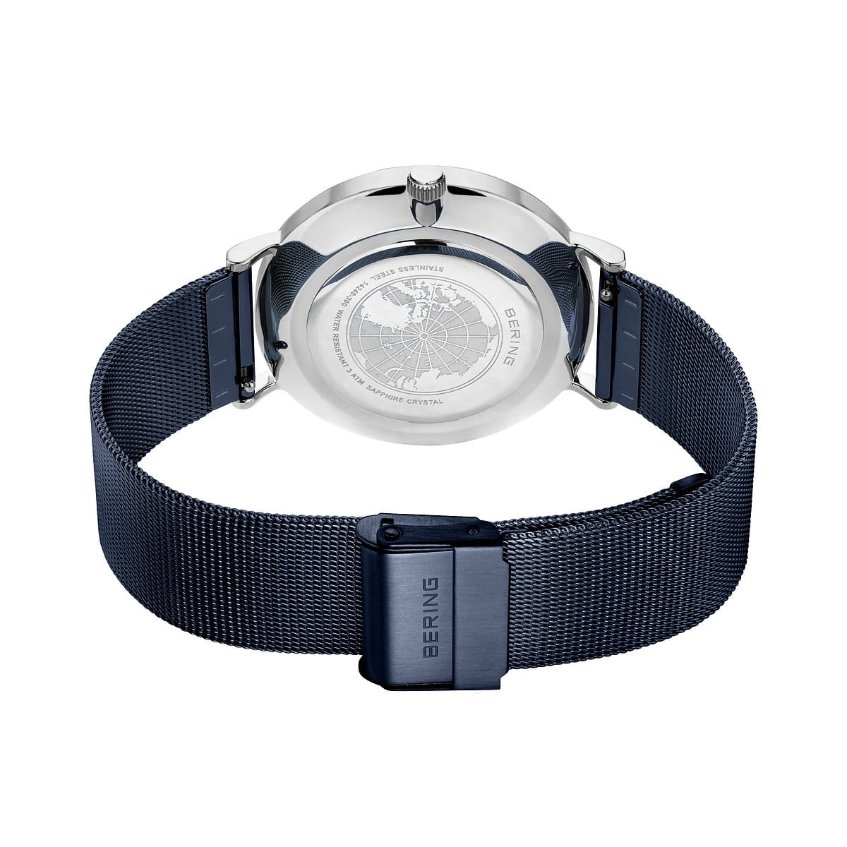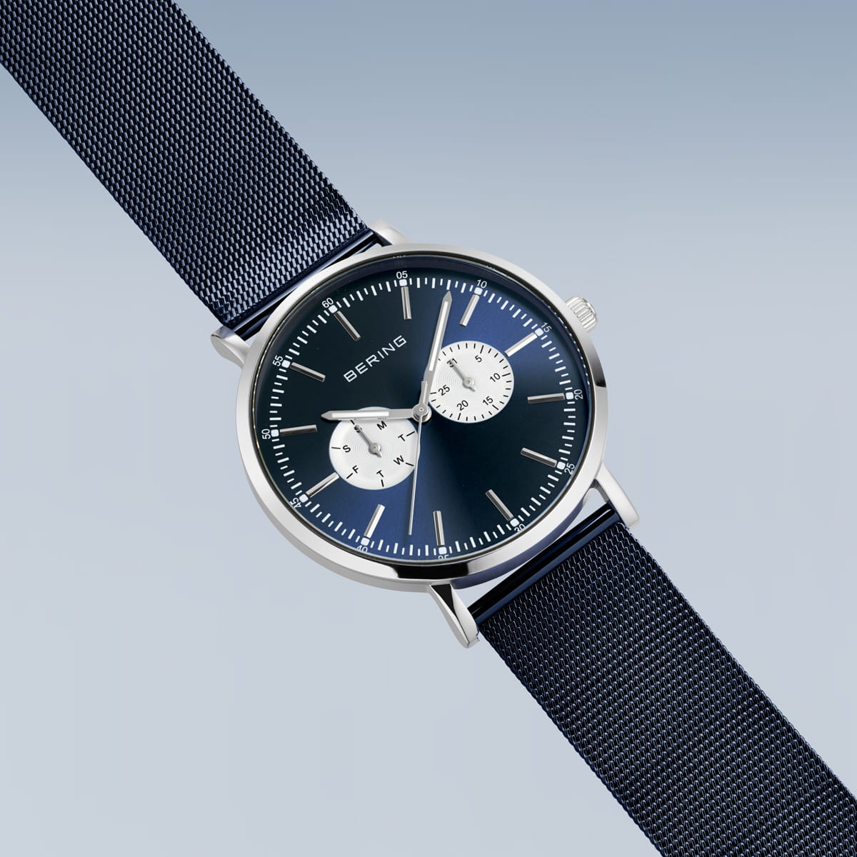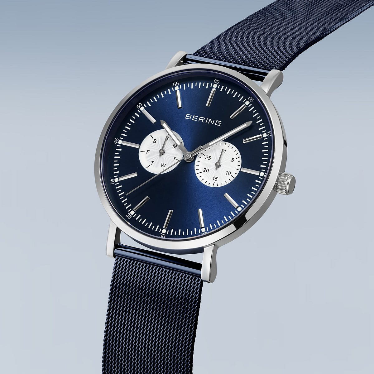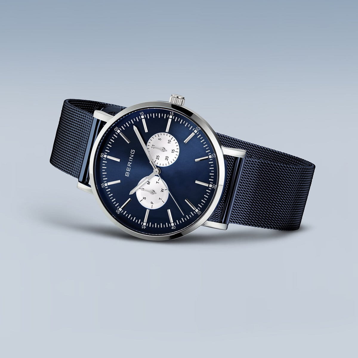 Puristischer Edelstahl wird in der CLASSIC Uhrenkollektion mit feingliedrigen, anschmiegsamen Milanaisebändern oder edlen Armbändern aus naturgegerbtem Kalbsleder kombiniert. Klassische Eleganz trifft auf ein unverwechselbar angenehmes Tragegefühl und sorgt für den klassisch-edlen BERING-Look.