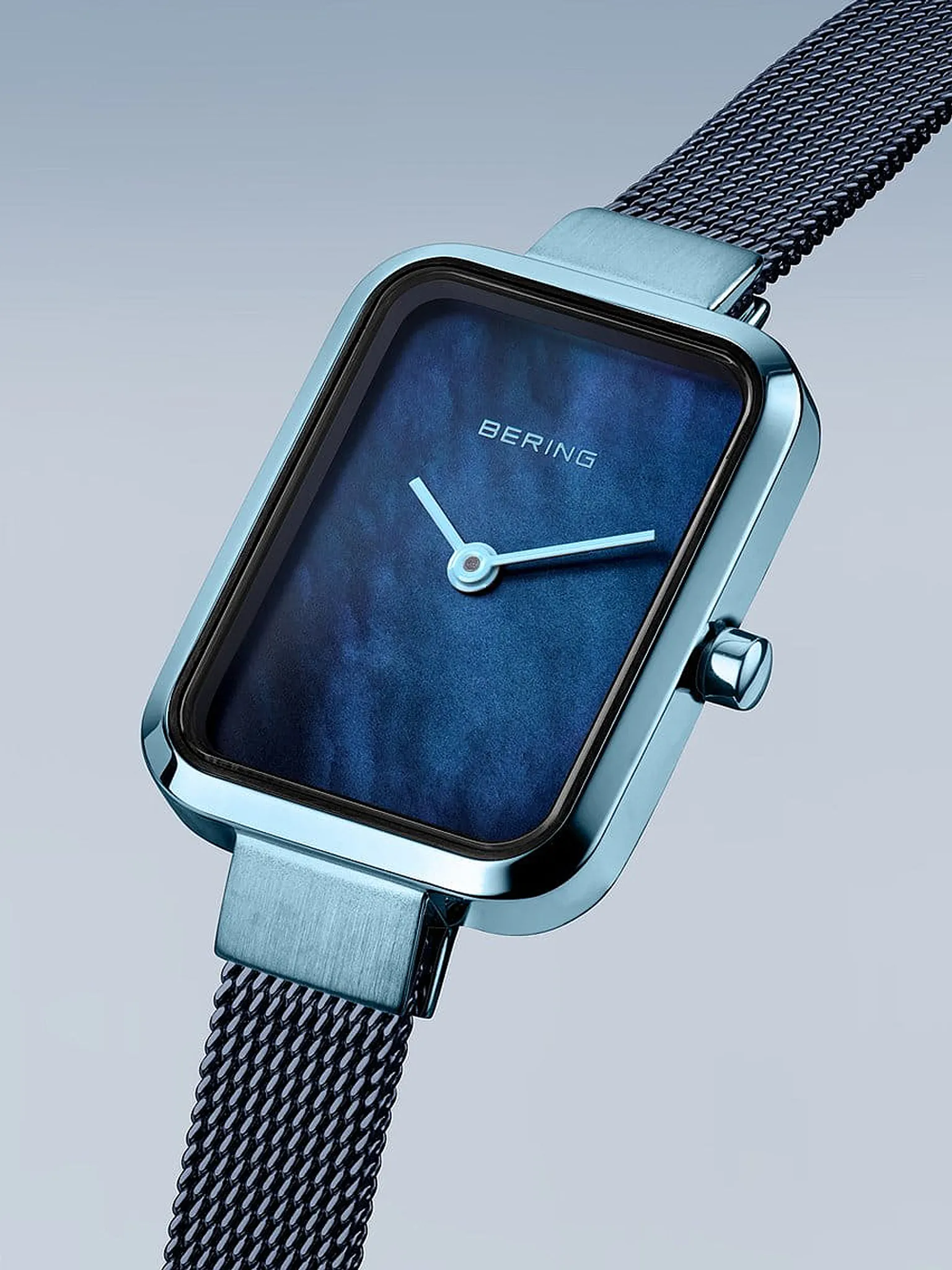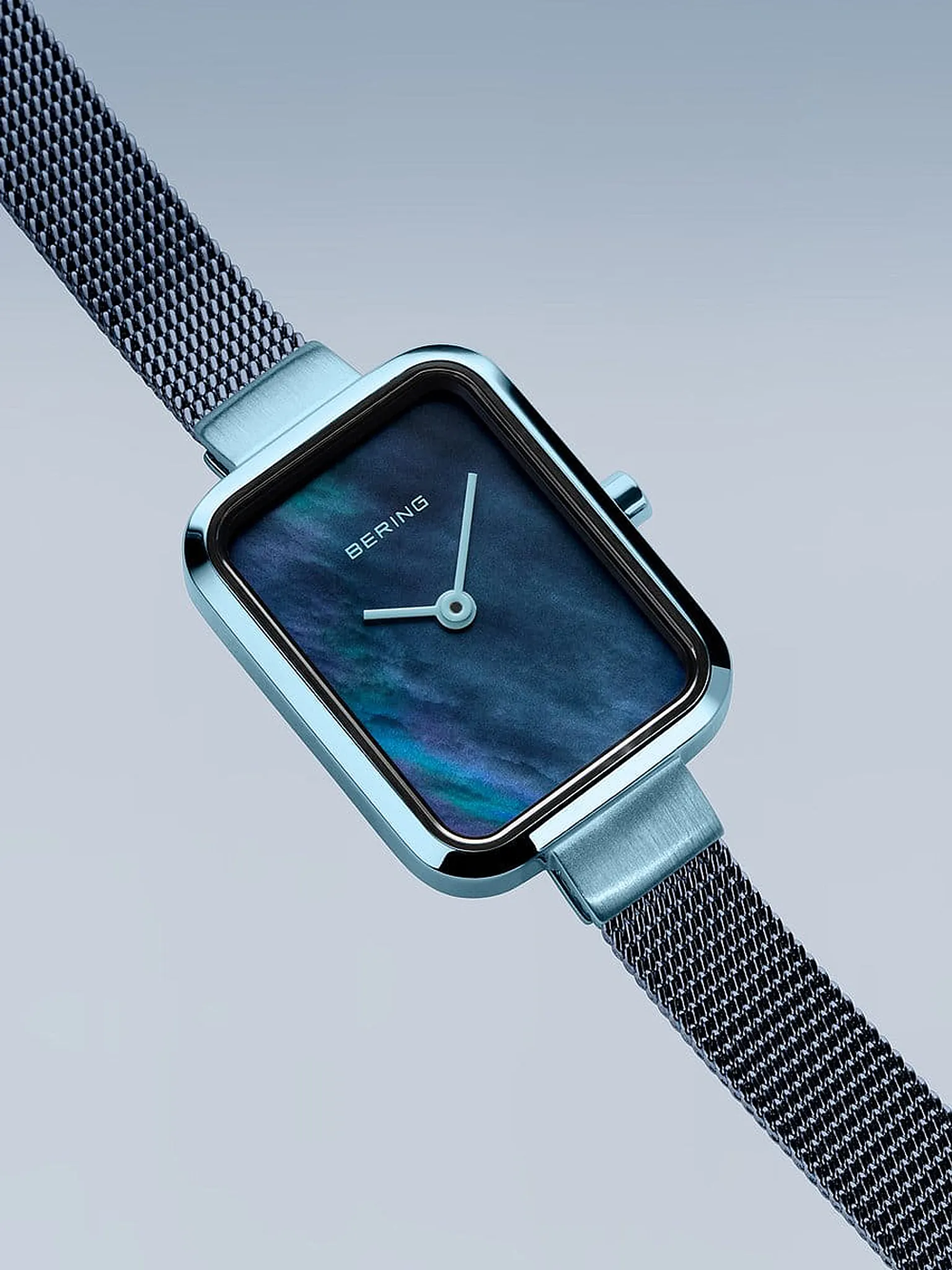 Das markante, eckige Gehäuse in tiefem Blau und das feine Milanaisearmband verleihen dieser Uhr eine besonders stilvolle Ausstrahlung. Dank ihres zeitlosen Looks ist sie die ideale Wahl für Frauen, die Armbanduhren mit klarer Linienführung und hochwertiger Verarbeitung schätzen. Ob im Alltag oder zu besonderen Anlässen – diese Uhr setzt einen dezenten, aber wirkungsvollen Akzent an Ihrem Handgelenk.
