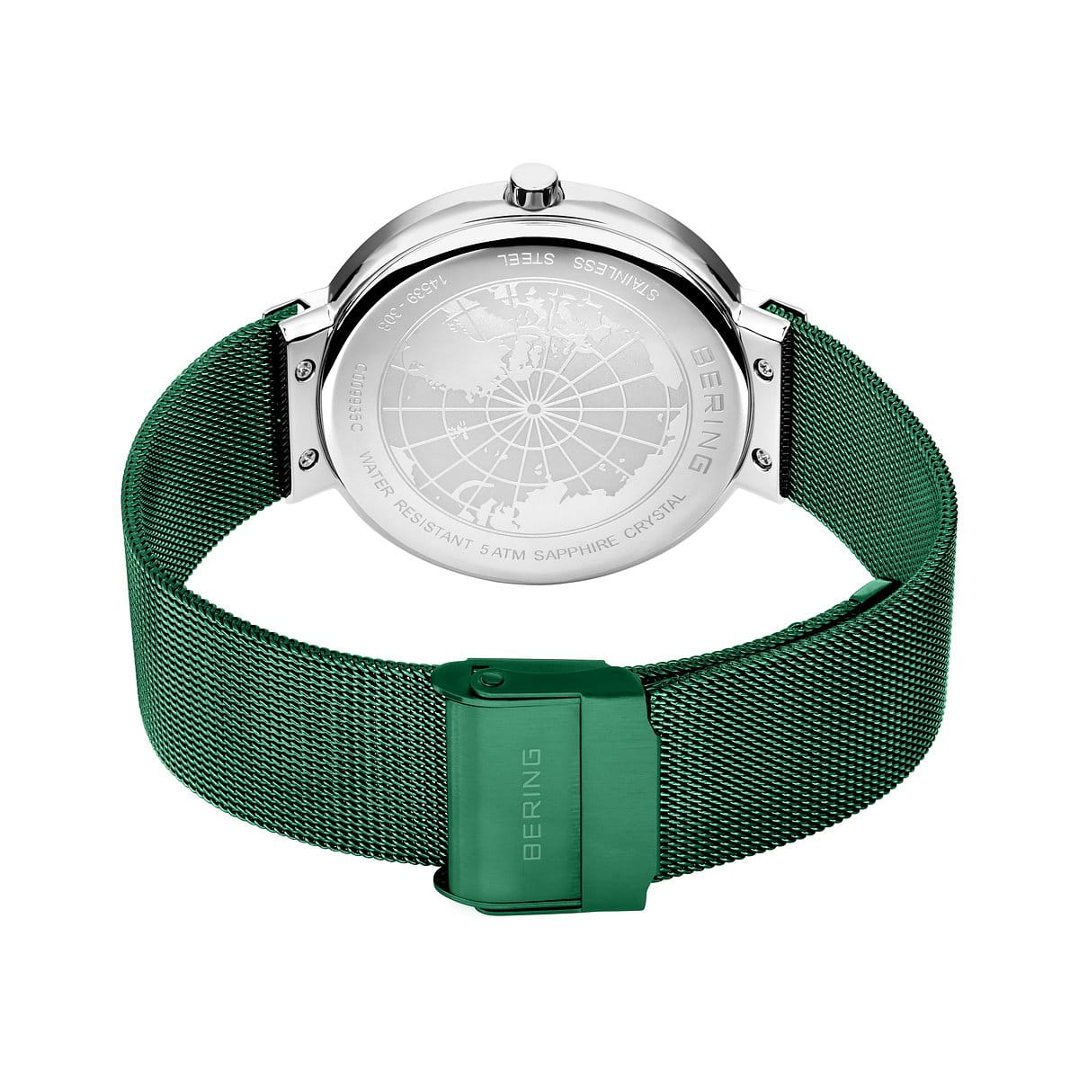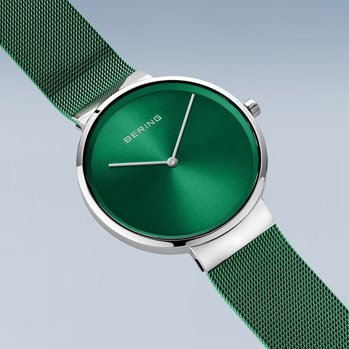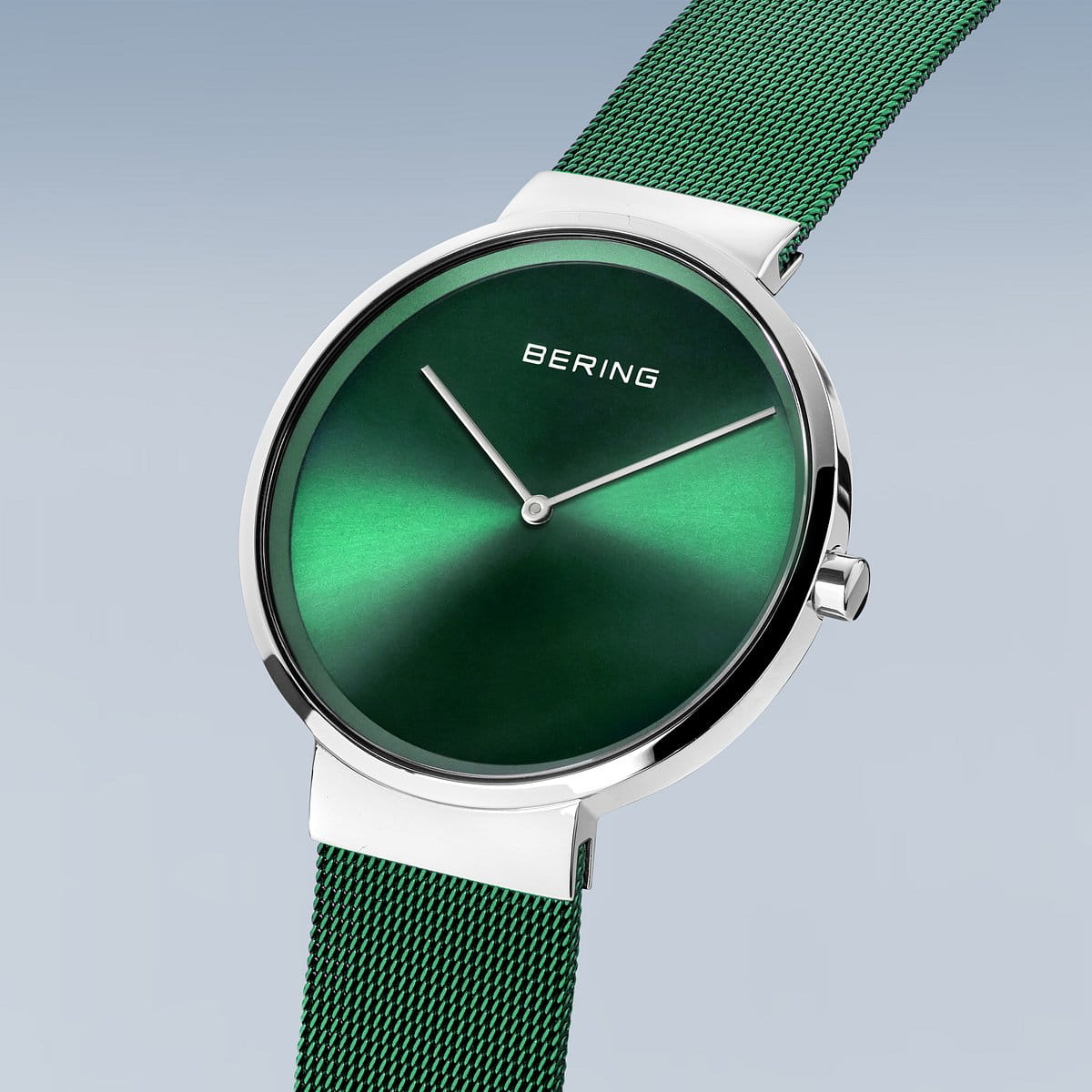Puristischer Edelstahl wird in der CLASSIC Uhrenkollektion mit feingliedrigen, anschmiegsamen Milanaisebändern oder edlen Armbändern aus naturgegerbtem Kalbsleder kombiniert. Klassische Eleganz trifft auf ein unverwechselbar angenehmes Tragegefühl und sorgt für den klassisch-edlen BERING-Look.