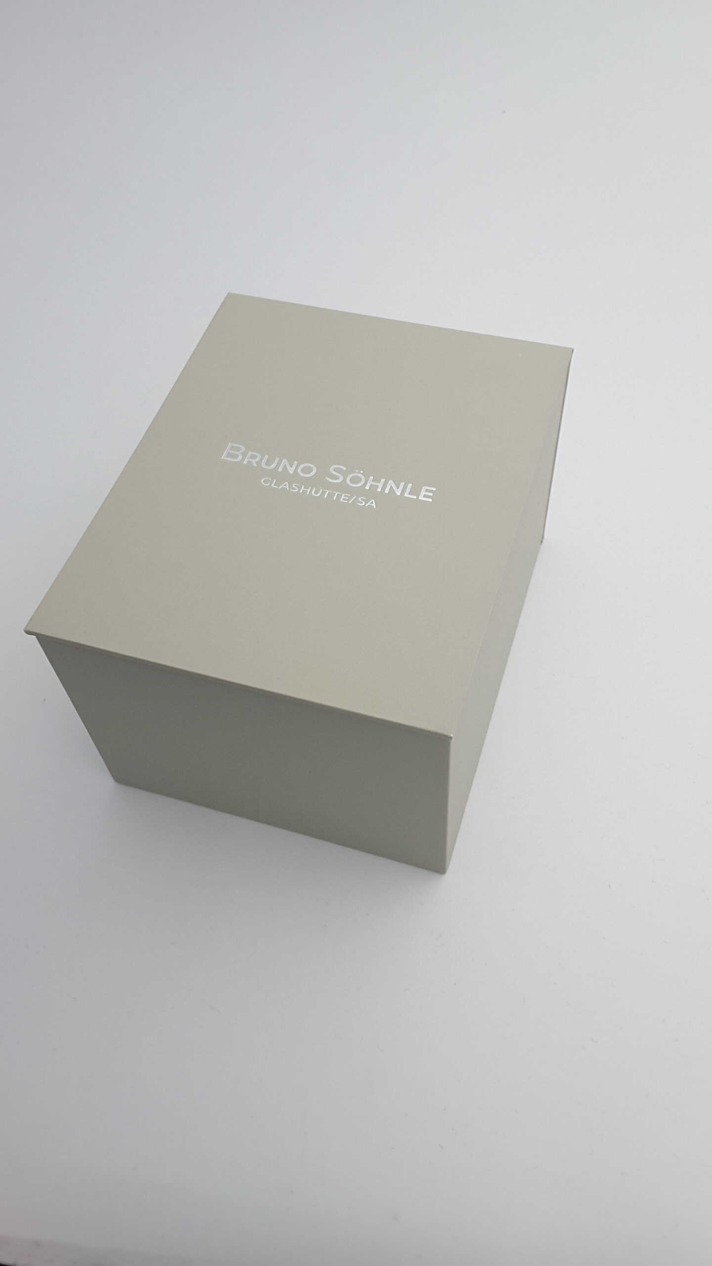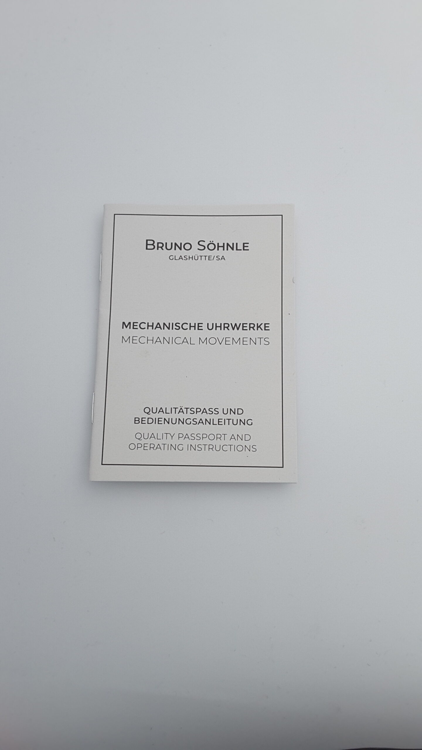 Atelierkaliber BS175 (Basiswerk Sellita SW200-1), Edelstahl, Ø 39 mm, Höhe 10,7 mm, Bandanstoß zu Bandanstoß 45,9 mm, 5 bar, gewölbtes Saphirglas innen entspiegelt, Bio Echtlederband (cognac) mit Ziernaht Ton in Ton, Bandverlauf 20/18 mm, Dornschließe.