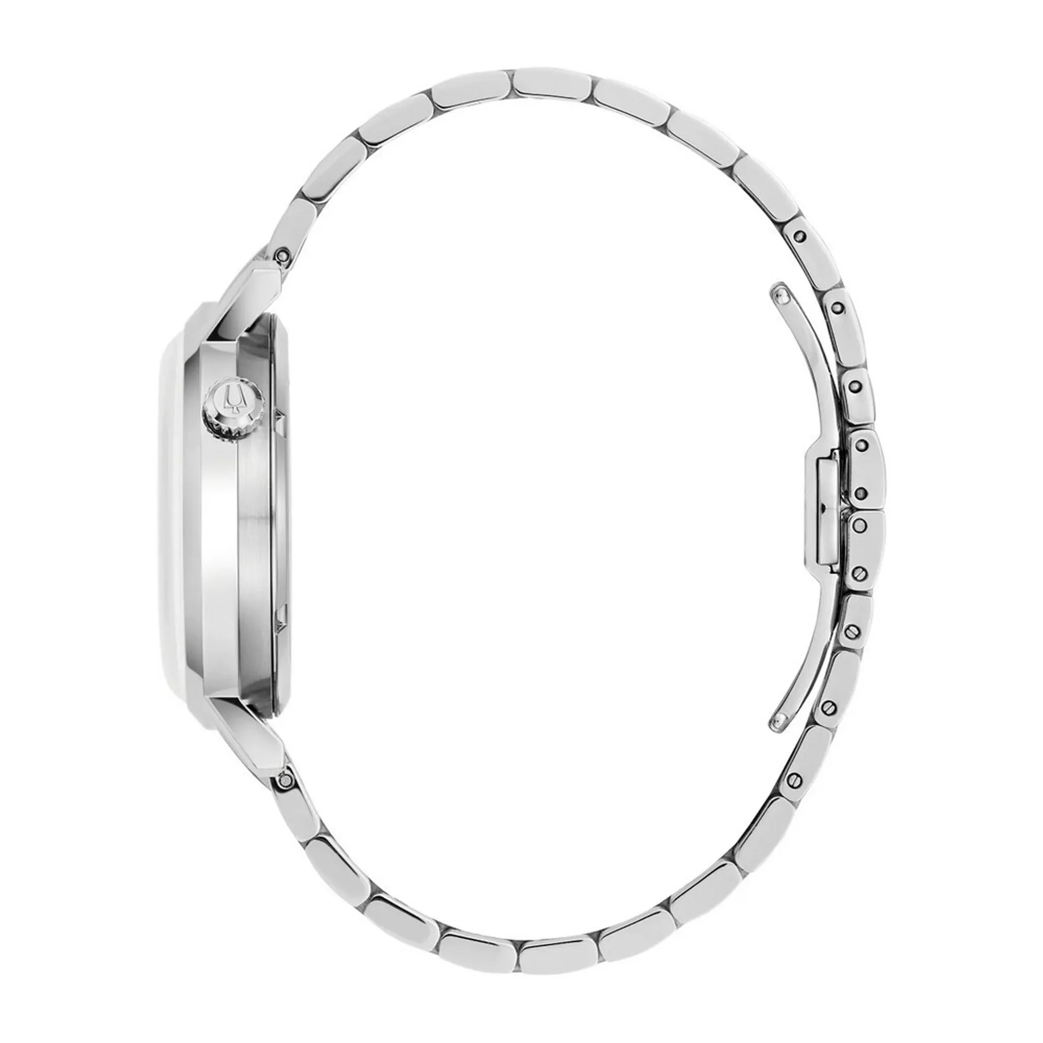 Diese Herrenuhr 96A319 kombiniert zeitlose Eleganz mit moderner Technik. Die Uhr ist mit einem 38 mm Edelstahlgehäuse ausgestattet.