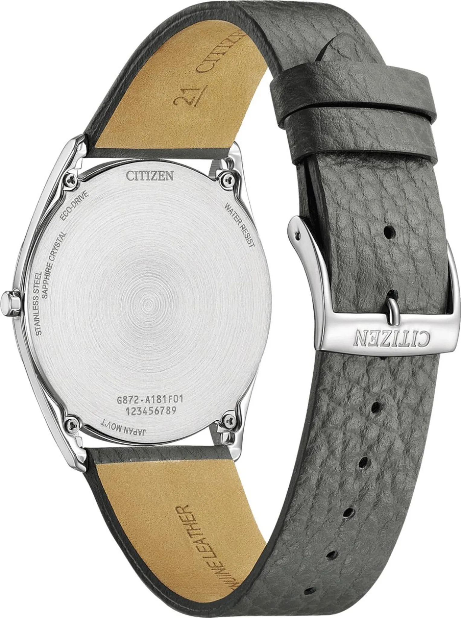 Eine Uhr gilt für die meisten Uhrenfans bereits als flach, wenn sie weniger als 10 Millimeter in der Höhe misst. Von einer ultraflachen Uhr spricht man, wenn sie diese Bauhöhe nochmals deutlich unterschreitet. Zum Beispiel mehr als halbiert: So wie die neue CITIZEN Suratto, die mit ihrem Saphirglas, einem lichtdurchlässigem Zifferblatt, einer Solarzelle, einem hauseigenen Eco-Drive-Werk sowie einem Edelstahlgehäuse mit verschraubtem Boden auf exakt 4,71 mm kommt. Die Bezeichnung ultraflach hat sich die Suratto damit redlich verdient. Denn selbst für eine Quarzuhr sind dies bemerkenswert geringe Maße.