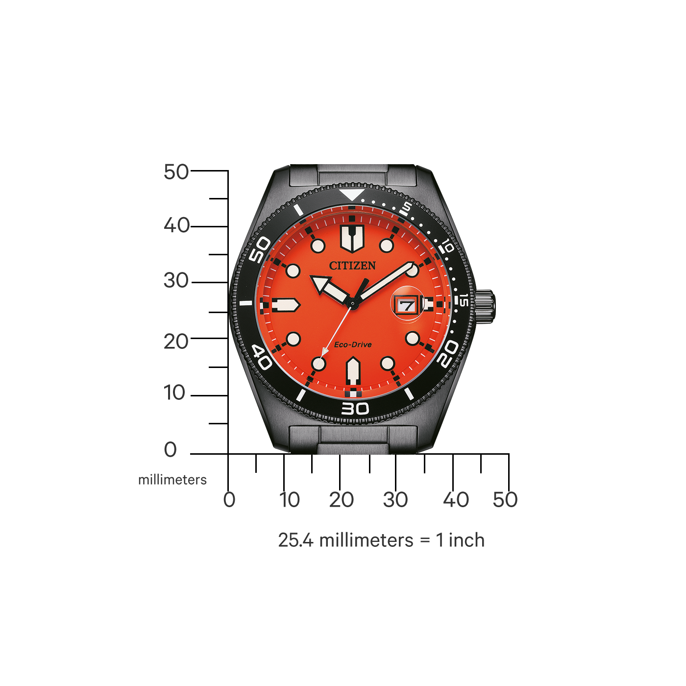 Das auffällige orange Zifferblatt mit Strichindizes wird durch widerstandsfähiges Kristallglas geschützt. Das Eco-Drive-Kaliber J810 bietet eine Gangreserve von 240 Tagen, eine Genauigkeit von ±15 Sekunden pro Monat, Datum sowie eine Anzeige der Batterieladung. Mit 10 bar Wasserdichtigkeit und Sicherheitsfaltschließe ist die Uhr sowohl robust als auch alltagstauglich.