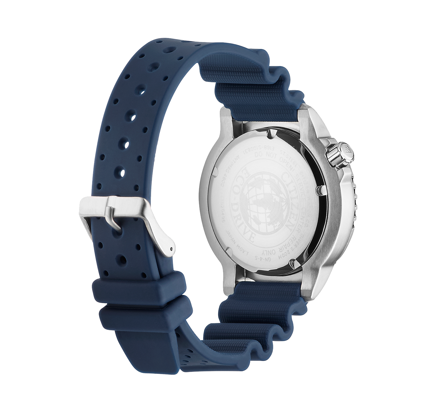 Beweisen Sie mit der ISO-zertifizierten Promaster Diver von CITIZEN®, dass eine Taucheruhr Spaß machen und funktional sein kann. Dank der Eco-Drive-Technologie wird sie durch Licht angetrieben und benötigt keine Batterie, sodass Sie nie wieder Ihren Gehäuseboden öffnen oder Ihren Tauchgang gefährden müssen. Ausgestattet mit Edelstahlgehäuse, dunkelblauem Polyurethanband und dunkelblauem Zifferblatt. Mit Aluminiumring auf der Lünette, einseitig drehbarer Zeitanzeige und WR200. Ausgestattet mit unserer Eco-Drive Technologie – angetrieben durch Licht, jedes Licht. Benötigt nie eine Batterie. Kaliber Nummer E168.