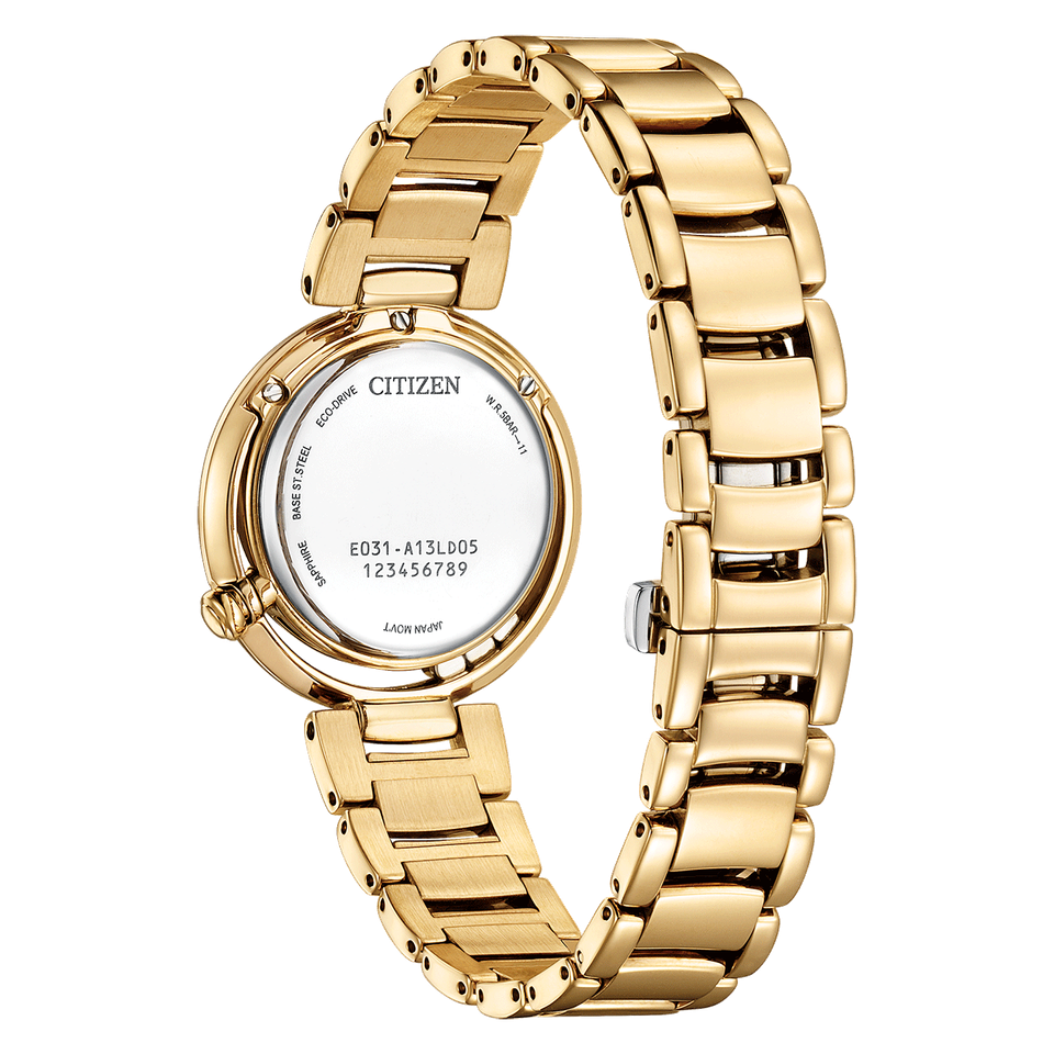 Bei dem Modell EM1113-82Y ergänzen 7 Diamanten und 5 geschliffene Elemente die feinen Blüten auf dem Zifferblatt. Zwischen dem inneren und äußeren Gehäusering befinden sich 3 bewegliche Diamanten (alle Lab-grown). Das stilvolle Design der Uhr bringt die dezente Eleganz zum Ausdruck.