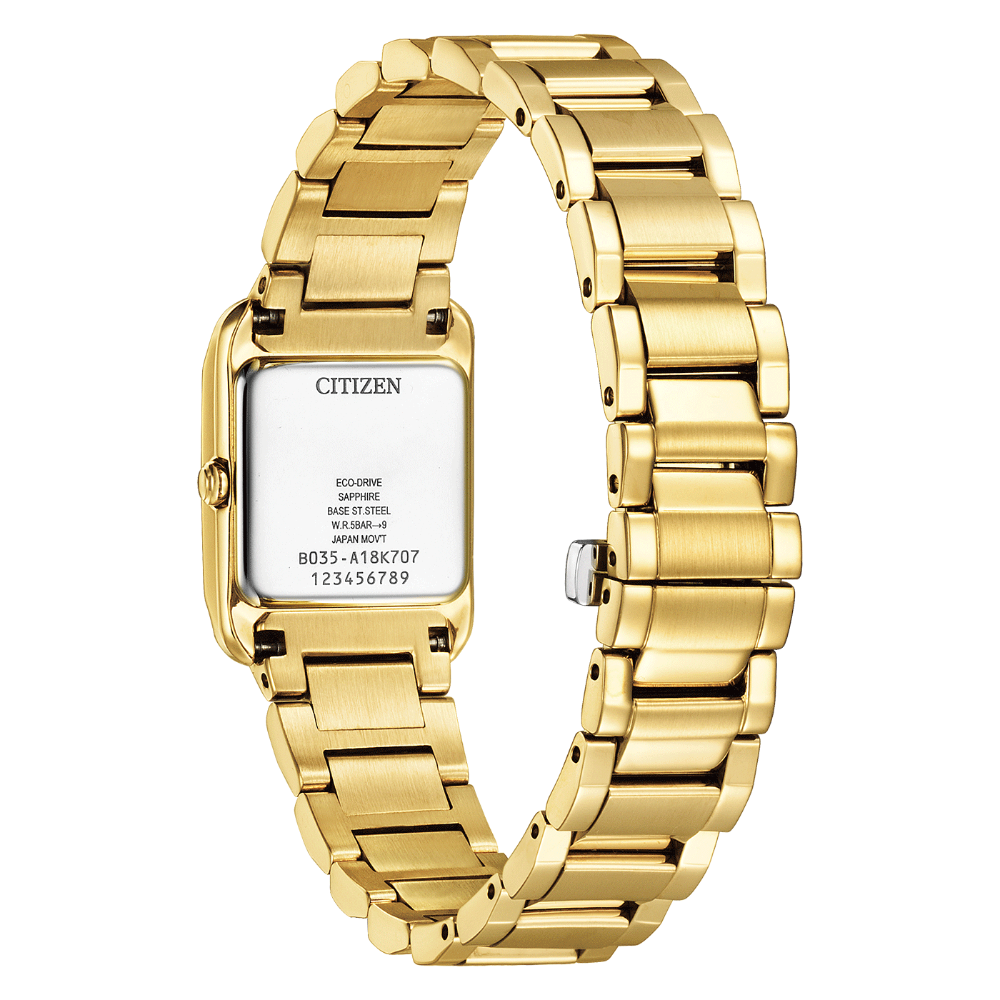 Die moderne Damenuhr EW5602-81D beeindruckt durch ihr rechteckiges Edelstahlgehäuse und passendes Armband, sowie ein elegantes Perlmutt-Zifferblatt mit blauen Zeigern. Ausgestattet mit Saphirglas, dem Kaliber B035 und Eco-Drive Lichtantrieb, kombiniert dieses Modell Stil mit Funktionalität. Mit einer Gehäusegröße von 21,5 x 28,4 mm und einer Wasserdichtigkeit bis zu 5 bar bietet diese Uhr sowohl Eleganz als auch Zuverlässigkeit für den täglichen Gebrauch.
