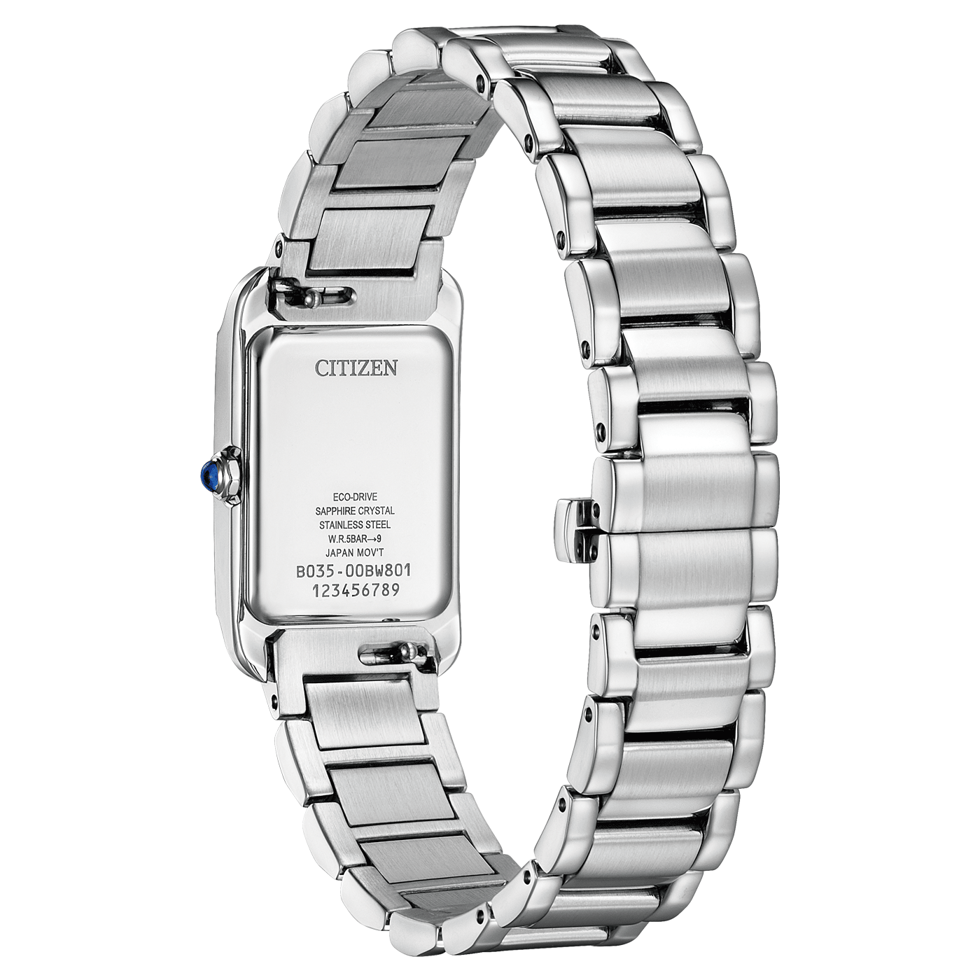 Der umweltfreundliche Eco-Drive Antrieb nutzt Licht als Energiequelle, wodurch Batteriewechsel der Vergangenheit angehören. Das Gehäuse und das Armband aus hochwertigem Edelstahl bieten nicht nur einen luxuriösen Look, sondern auch außergewöhnliche Haltbarkeit.