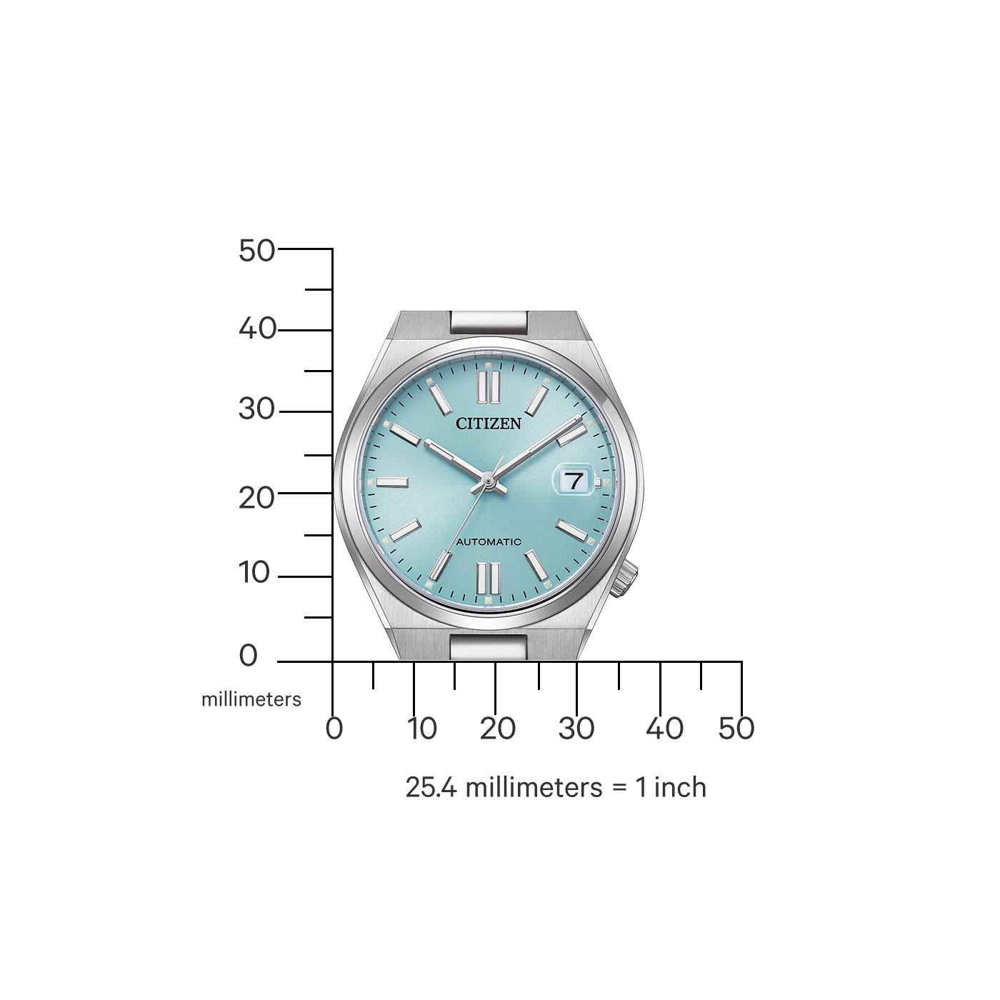 Dennoch gab es Stimmen, die nach einem kleineren Durchmesser gefragt haben – sei es für die Dame oder den Herren mit schmalerem Handgelenk. Citizen kommt nun diesem Wunsch nach und präsentiert drei neue Tsuyosa-Modelle mit einem Gehäusedurchmesser von 37 Millimetern. Die ersten „37er-Modelle“ sind in den Farben Eisblau, Pastellpink und Dunkelgrün erhältlich. Sie ergänzen die bisherigen 40-mm-Modelle und bieten somit eine noch größere Auswahl.