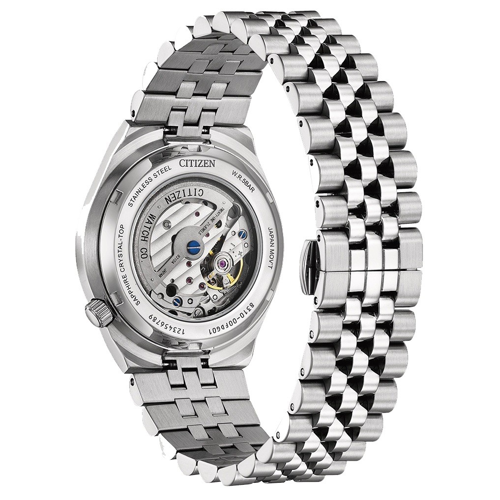 Neben dem neuen automatischen Inhouse-Werk (Kaliber 8310) mit 60 Stunden Gangreserve setzt CITIZEN bei der neuen TSUYOSA NK0020-55E auf bewährte Features: Kratzfestes Saphirglas mit Lupe über dem Datumsfenster, Leuchtmasse auf den Zeigern und Indizes, einen Glasboden, der einen Blick auf das neue Werk ermöglicht sowie eine Krone auf der 4-Uhr-Position für eine schlanke Silhouette und mehr Tragekomfort.