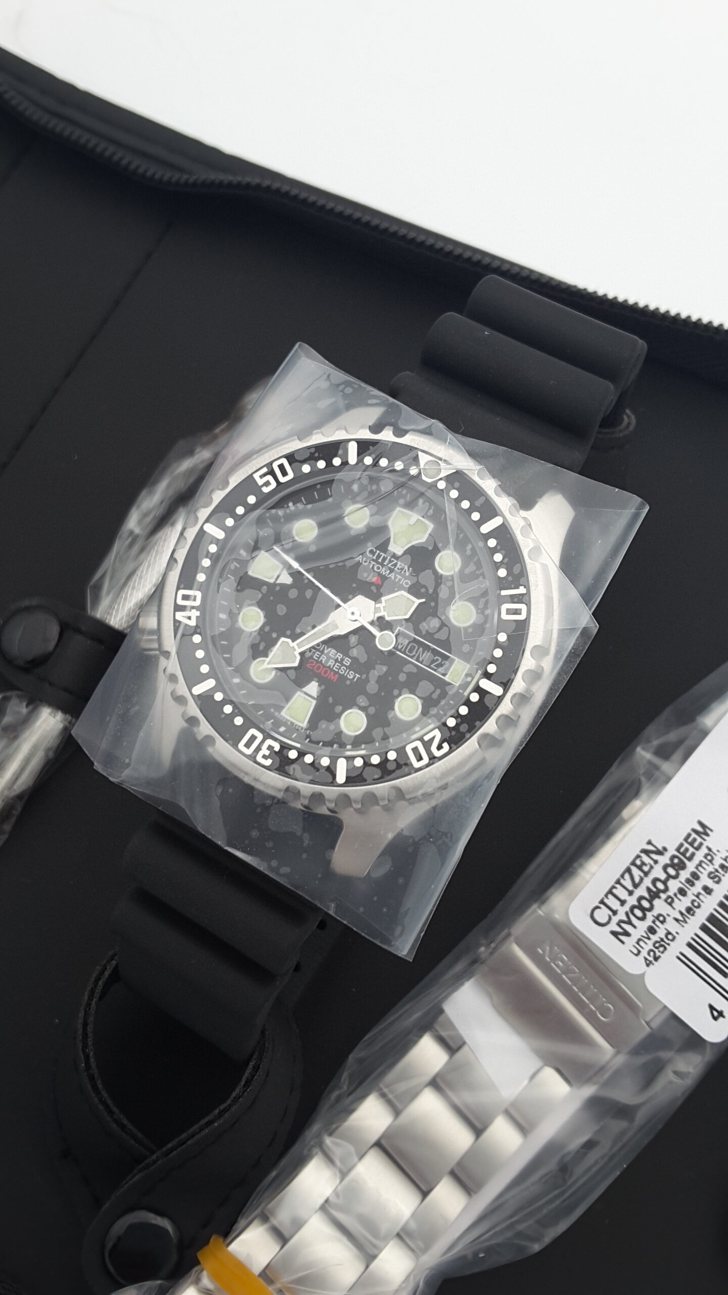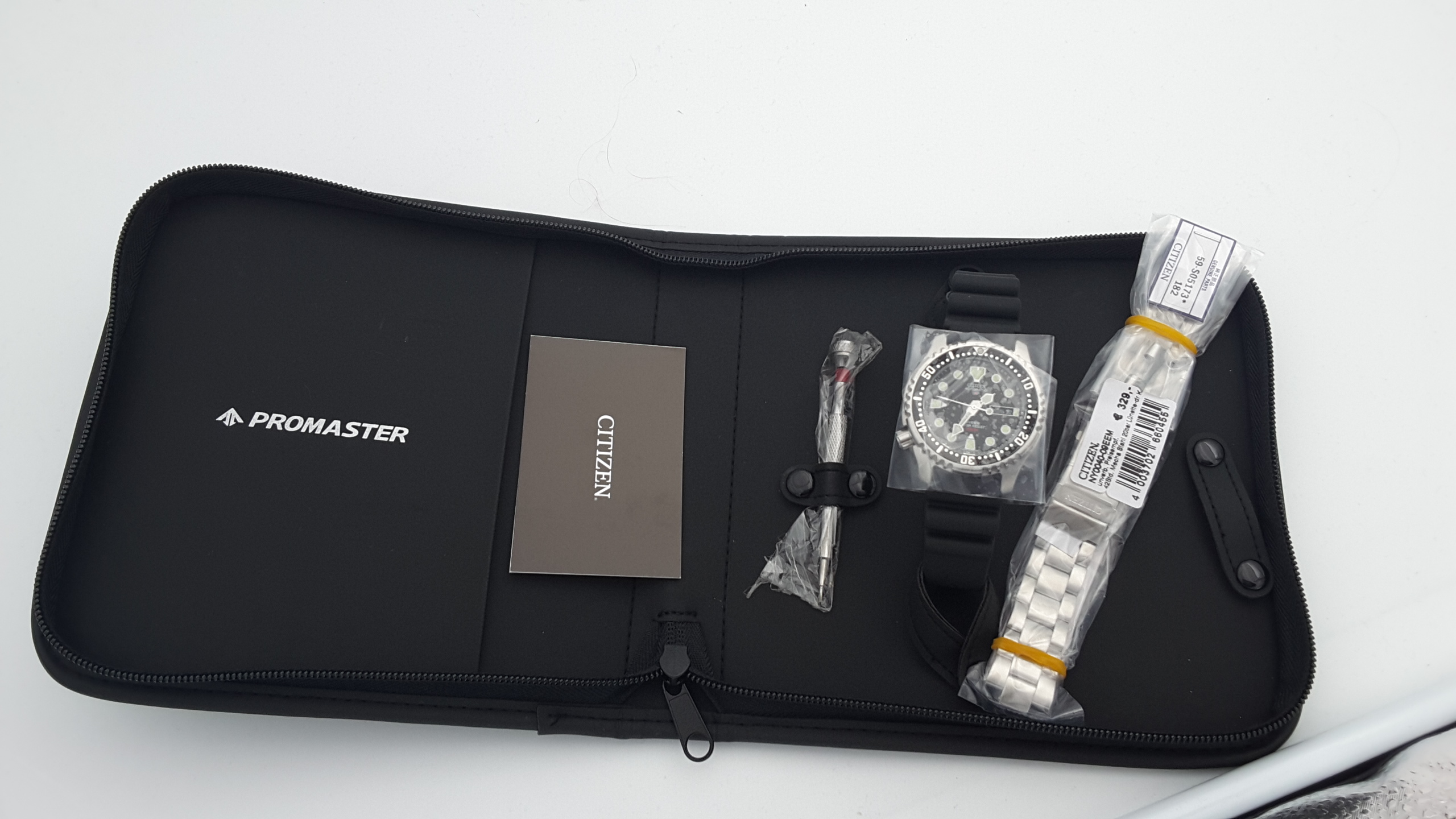 Die Taucheruhrikone von Citizen. Als Set mit Mappe , extra Stahlarmband mit Wechselwerkzeug .