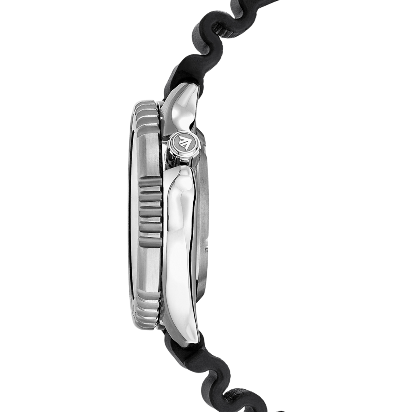 Perfekt für sportliche Aktivitäten, Sporttaucher und alle, die nach einer Uhr suchen, die mehr kann als resistent gegen Spritzwasser zu sein. Neben einer Wasserdichte von bis zu 20 bar bietet diese Uhr eine Tag / Datumanzeige , wahlweise Deutsch oder Englisch, ein automatisches Uhrwerk und lumineszierende Zeiger sowie Indizes. Das strapazierfähige Uhrenband besteht aus schwarzem Urethan und das Uhrengehäuse und Dornschließe aus robustem Edelstahl.
