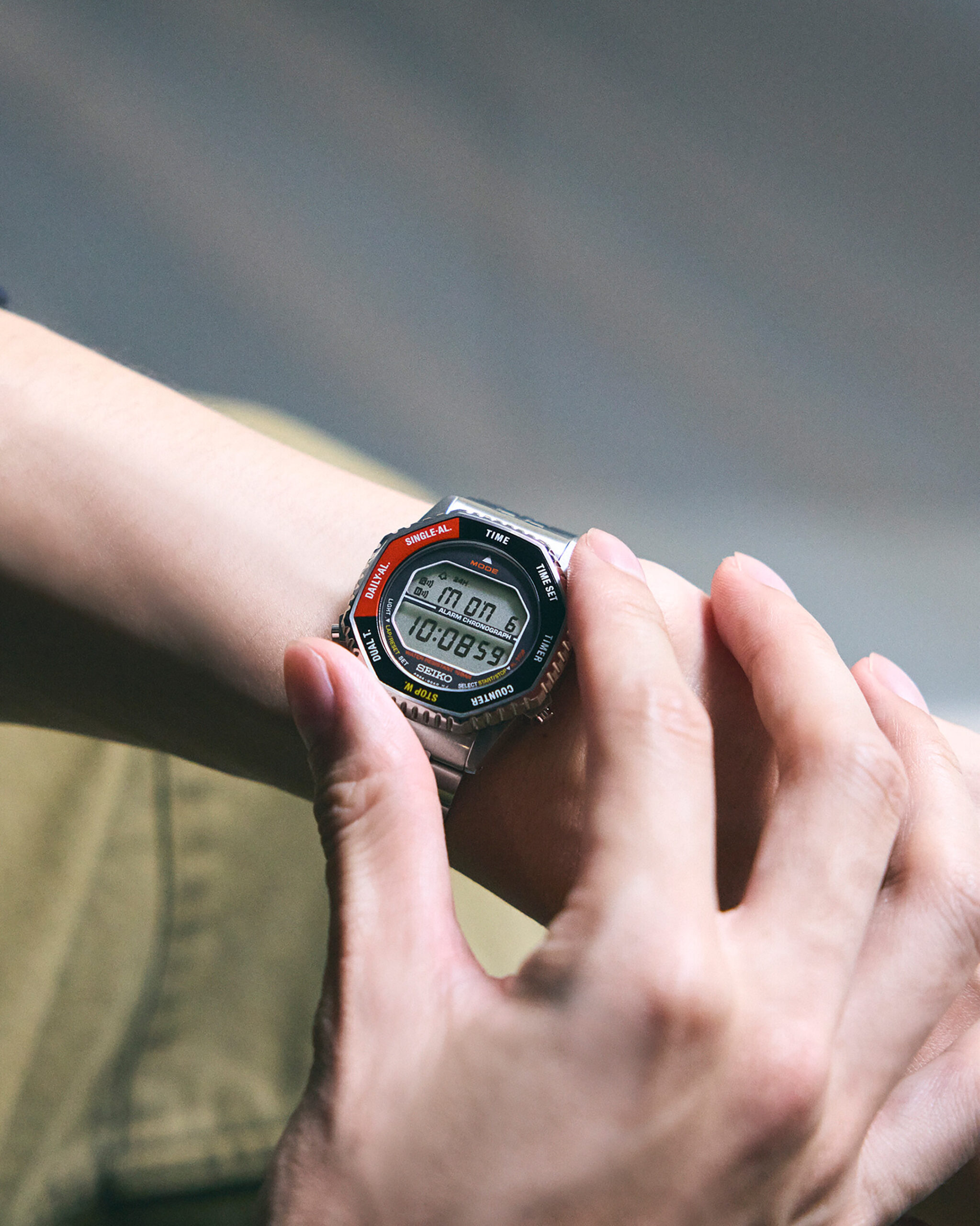 Der Digitale Alarm-Chronograph von Seiko zeigt, wie spannend digitale Quarzuhren sein können. Die Seiko A829 ist zurück. Eine digitale Quarzuhr, die in den 1980er Jahren entwickelt wurde und durch ihre außergewöhnliche Funktionalität und ihr markantes Design schnell Kultstatus erreichte. Unter Sammlern ist sie auch als „Rotocall“ bekannt, ein Spitzname, der sich auf die Bedienung über die achteckige, polygonale Lünette bezieht. Statt klassischen Drückern nutzt man die beidseitig drehbare Lünette, um zwischen den Anzeigen zu wechseln. Dazu gehören Timer, eine zweite Zeitzone und eine Alarmfunktion. Auch das LCD-Display orientiert sich am Klassiker und verwendet die charakteristische Schriftart des historischen Modells. Zusätzlich bietet es praktische Erweiterungen wie eine AM/PM-Anzeige und eine Batteriestandanzeige, die den Alltag noch komfortabler machen.