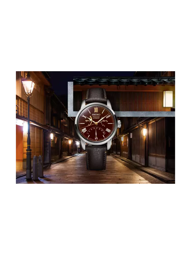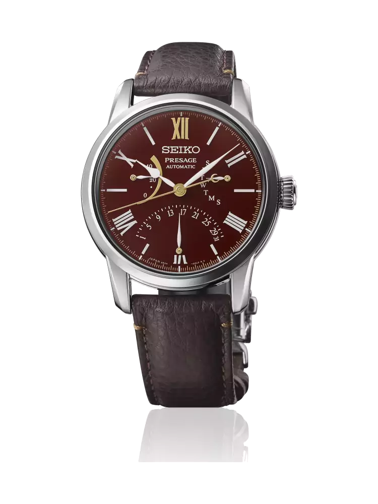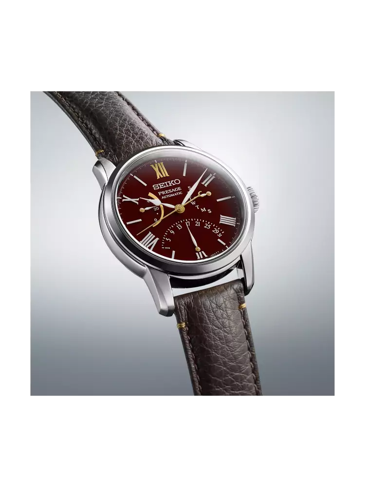 Dort stellen der Urushi-Meister Isshu Tamura und sein Team einige der charakteristischsten Urushi-Lacke Japans her. Wie die Uhr mit dem weißen Emaille-Zifferblatt wird auch die Urushi-Lack-Kreation vom Kaliber 6R24 angetrieben. Sie wird an einem dunkelbraunen Lederarmband präsentiert.