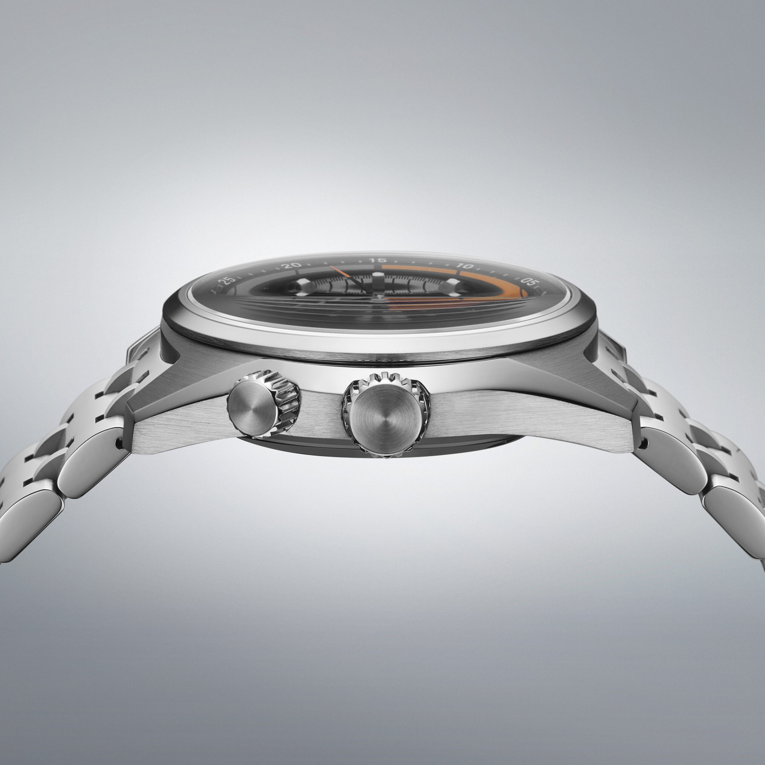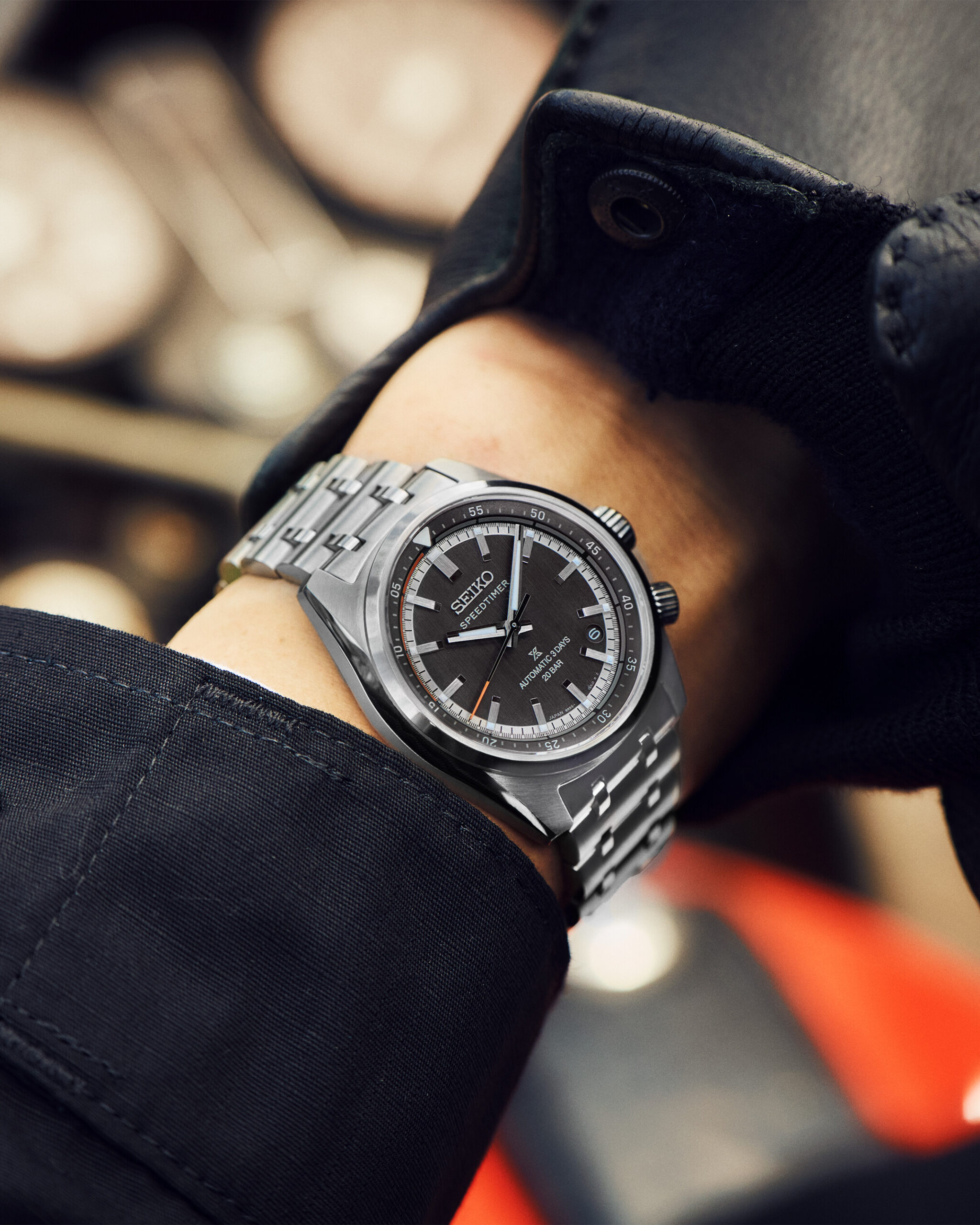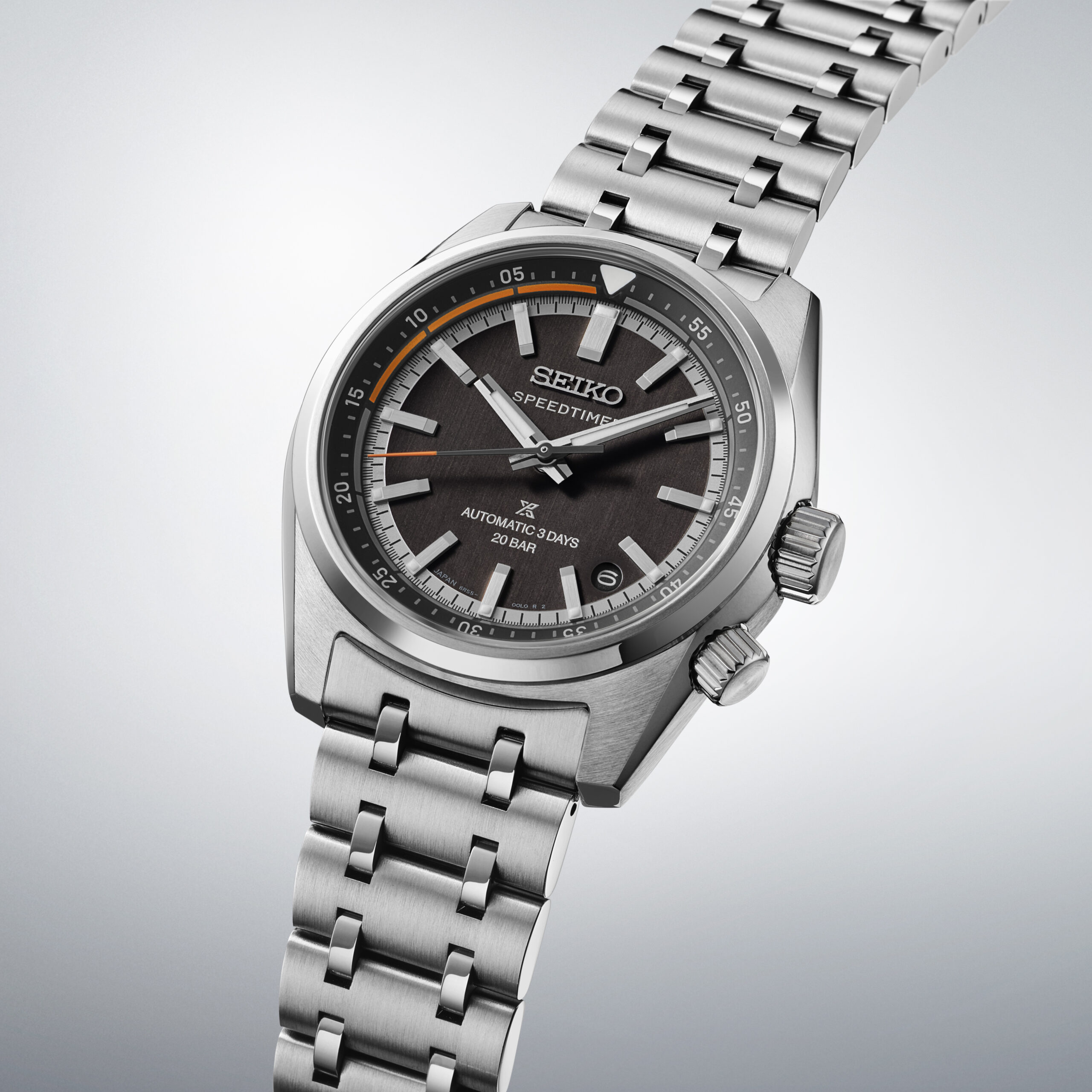 Die ersten Automatik-3-Zeiger-Speedtimer Die neuen Speedtimer Automatik Modelle kombinieren zwei starke Elemente – eine praktische Countdown-Funktion über einen innenliegenden Drehring und die ikonische, fließende Gehäuseform, inspiriert vom legendären Seiko Speedtimer von 1972, dem „Panda“-Modell, wie es von Fans liebevoll genannt wird. So entsteht ein Zeitmesser, der sportliche Funktionalität mit echter Seiko-Tradition verbindet. Der drehbare Innenring ermöglicht flexible Zeitmessungen, zum Beispiel die verbleibende Zeit bis zum Rennstart oder die Dauer eines Boxenstopps. Ein mit Lumibrite beschichteter ▼-Marker sorgt auch bei Dunkelheit oder schlechten Lichtverhältnissen für optimale Ablesbarkeit.