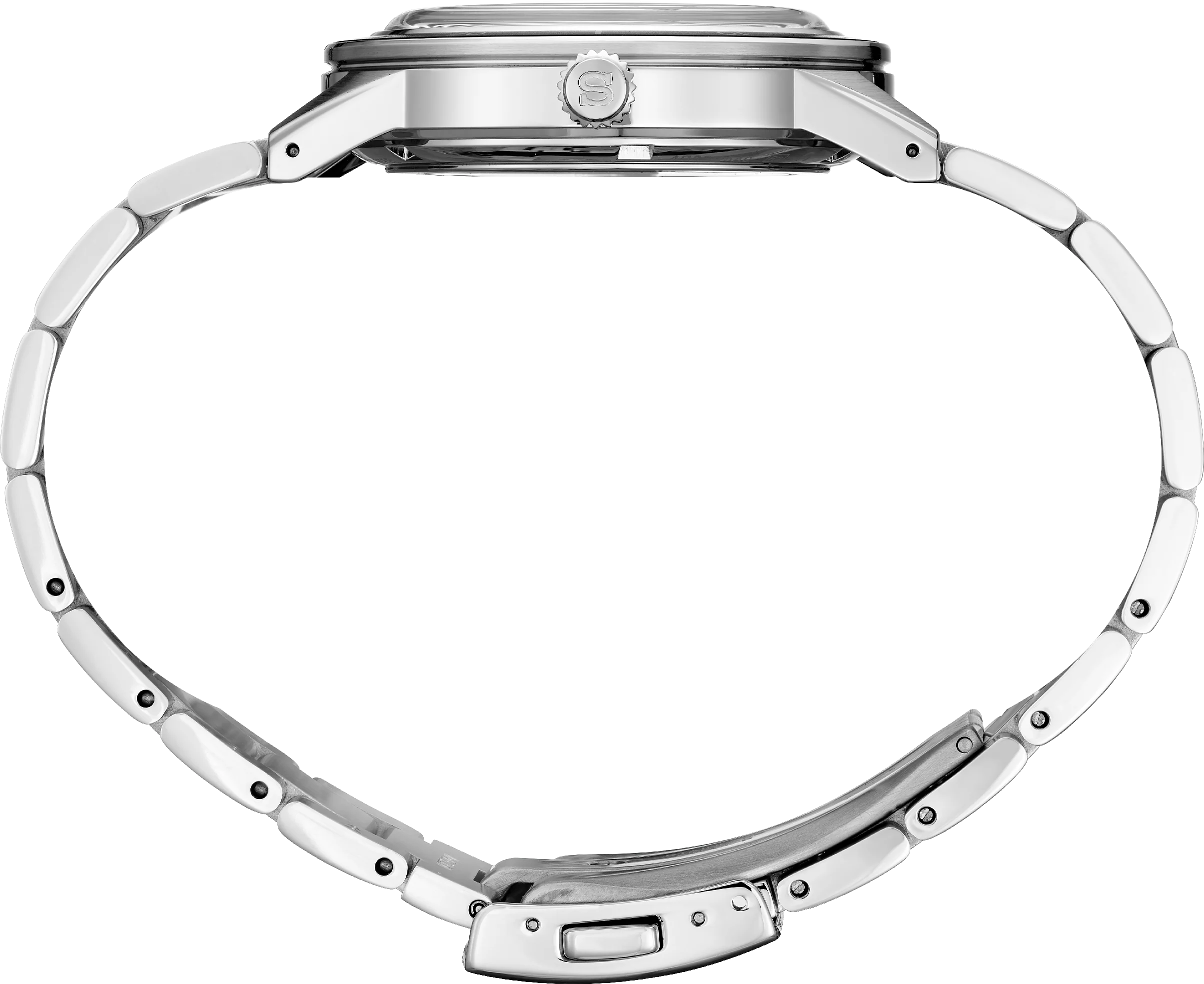 Das abgerundete Gehäuse ist leicht nach innen geneigt, um den Tragekomfort am Handgelenk zu erhöhen. Die Bandanstöße sind sorgfältig auf Hochglanz poliert, was den Uhren trotz ihrer insgesamt ruhigen und sanften Anmutung eine gewisse Schärfe verleiht und die perfekte Balance zwischen Moderne und Vintage-Look schafft.