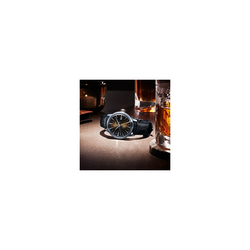 Die Kollektion Presage Cocktail verströmt den Charme eines Modells der Haute Horlogerie, das von der Freude am Genuss eines Cocktails inspiriert wurde. Das schimmernde, sonnenbeschienene Zifferblatt wird durch die sieben Lackschichten und die Klarheit der reliefartigen Indizes hervorgehoben. Die Krone mit ihrer einzigartigen Form lässt Sie das starke Drehmoment des Aufzugsmechanismus spüren.